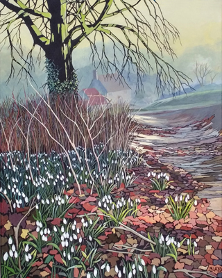 This painting called "Snowdrop Walk" measures 20" X 16" and depicts the footpath running down into the hamlet of Milton, not far from where I live in East Knoyle.This is my entry for the Snowdrop festival exhibition held every year in Shaftesbury art centre.